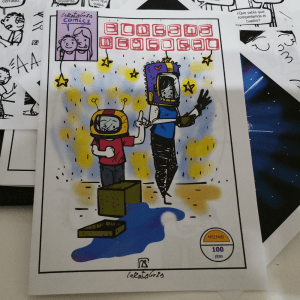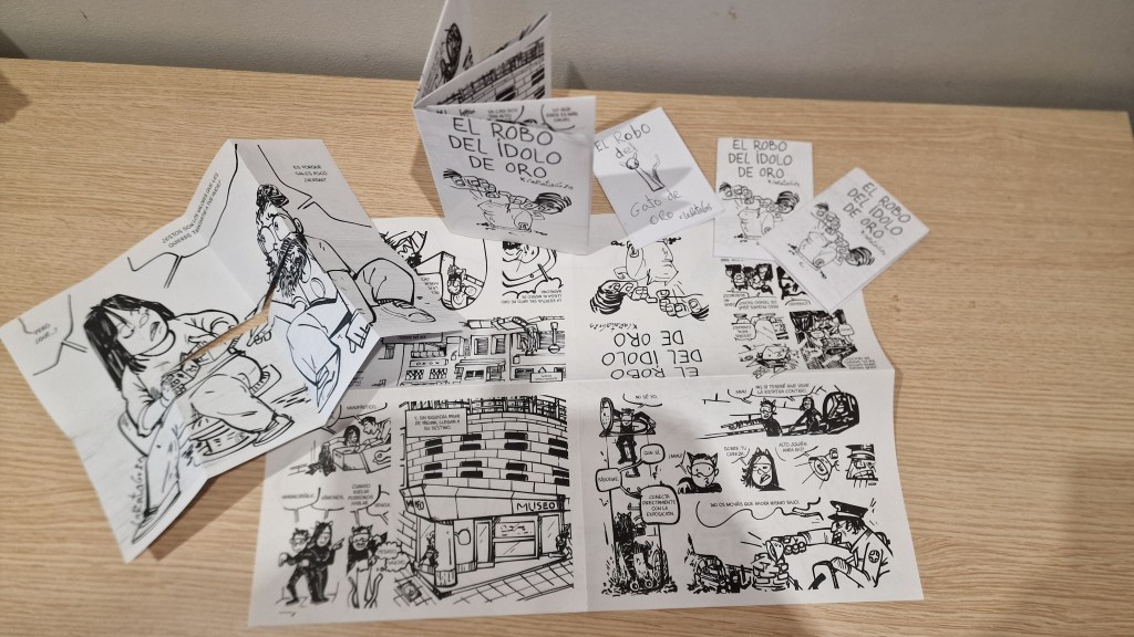 Aquí te dejo el cómic por si también te lo quieres leer, aunque para hacerlo bien tendrás que imprimir los dibujos en un folio, por las dos caras, y seguir las instrucciones de montaje. Si te animas tú también puedes hacer algo así.