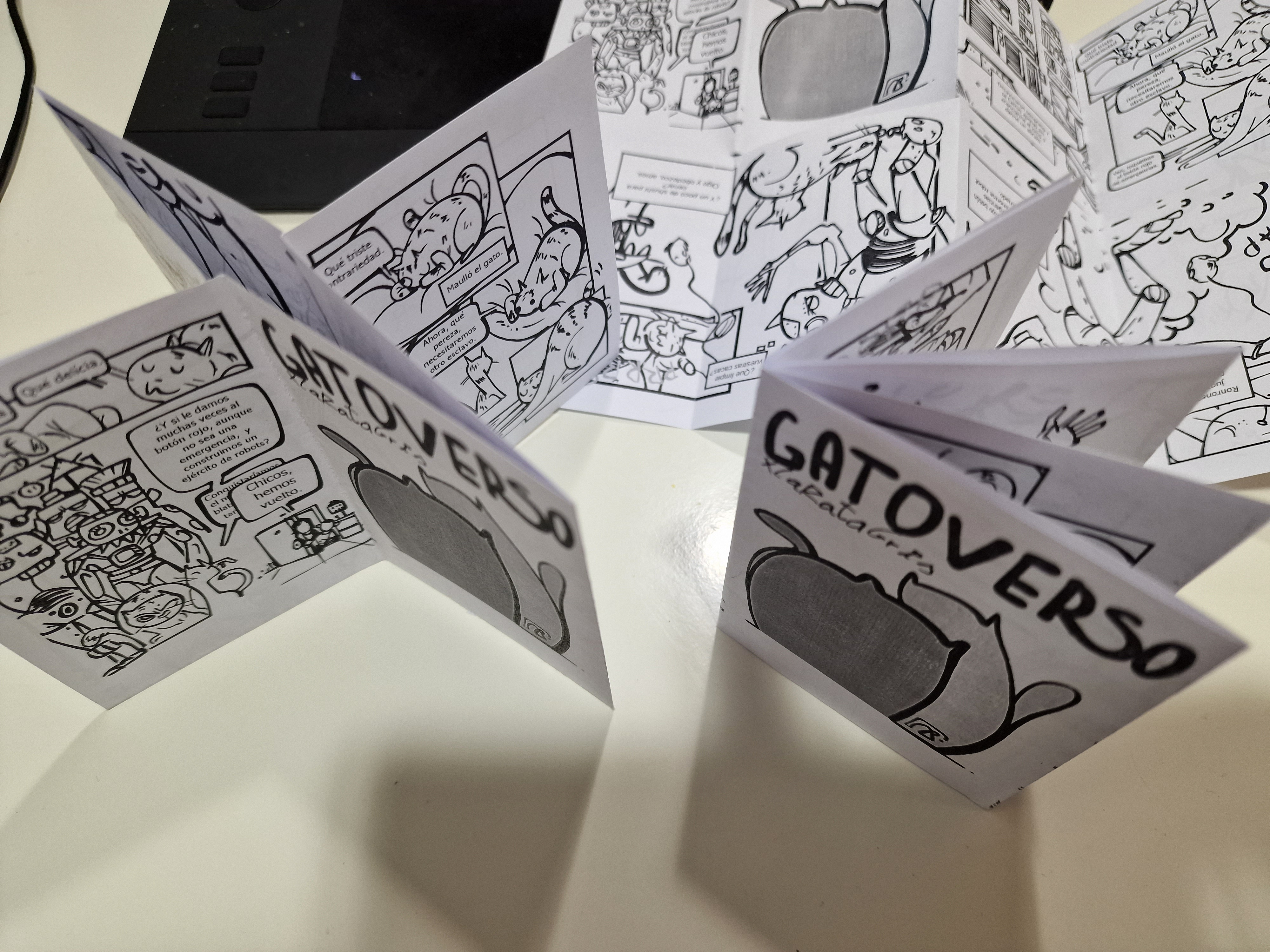 Aquí te dejo el cómic por si también te lo quieres leer, aunque para hacerlo bien tendrás que imprimir los dibujos en un folio, por las dos caras, y seguir las instrucciones de montaje. Si te animas tú también puedes hacer algo así.