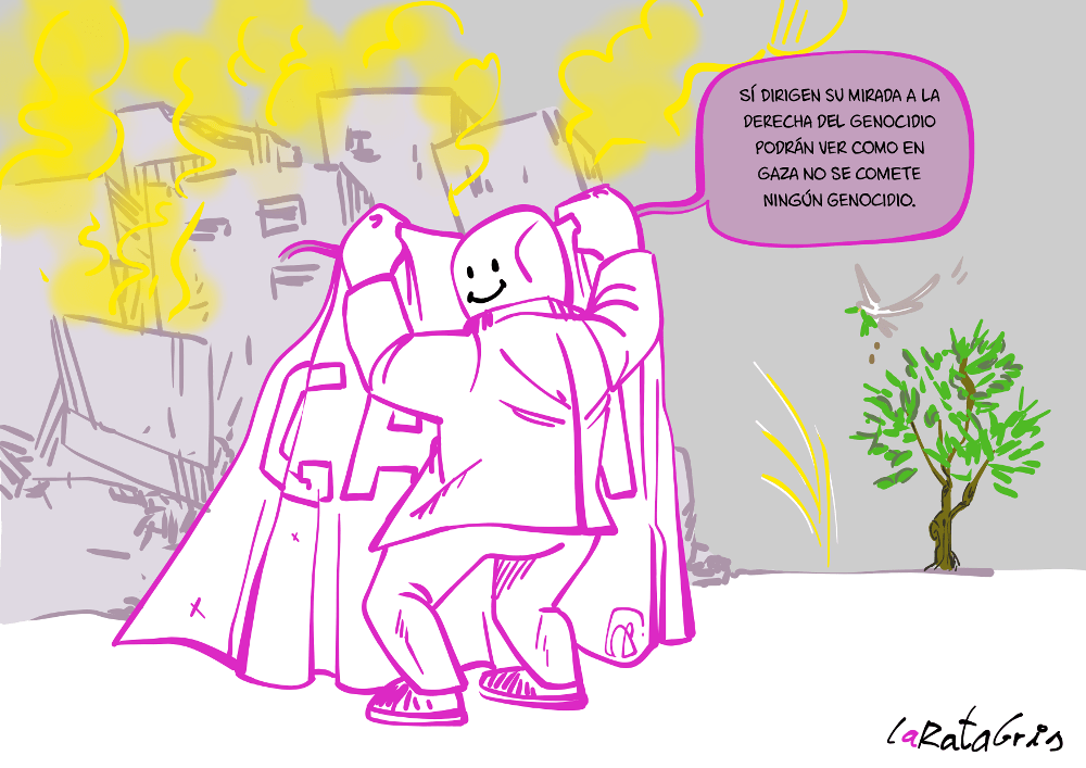 Las dibujantes: Rubén Uceda, La Rara, Calavera, Mpaink, LaRataGris, Sergi San Julian, Pablo bizarro, Santiaguete, Max Vadala, Paco Garabato, Azagra y Revuelta, Mejikano, Manolito Rastaman, Bellotero y, el actor de doblaje, Tona Aguiar; nos unimos bajo el paraguas de la Tinta RojiNegra para gritar un fuerte no a la guerra con las únicas armas de las que disponemos: corazón y dibujos.