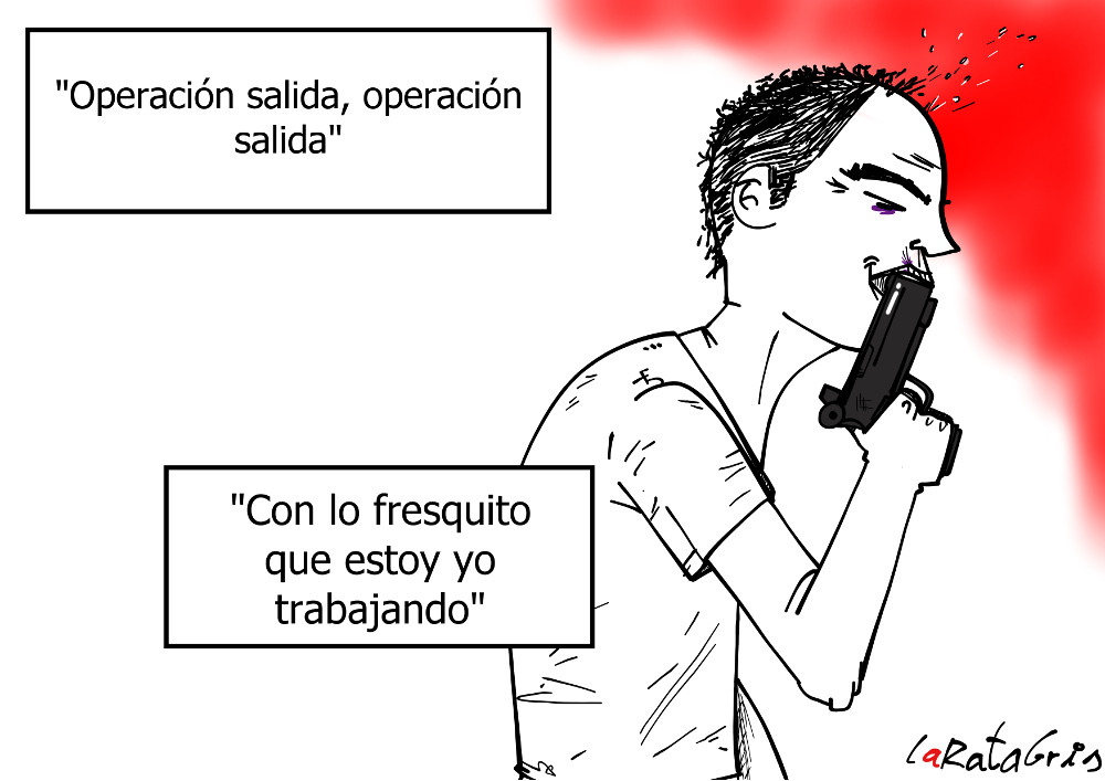 – Sí, sí; reflexionando. La vida nunca es lo suficientemente buena como para que no te deprima. Mira nuestro barrio; el edificio está que se cae hacia arriba, igual que nosotros. Los políticos van a lo suyo, el mundo apesta y ¿qué hacemos por cambiarlo? Continúa reflexionando al borde de un vacío de nueve pisos de altura ¿Quieres que te diga donde acabarás chafado? Un pasito y pum, el coyote no vuelve a levantarse.
